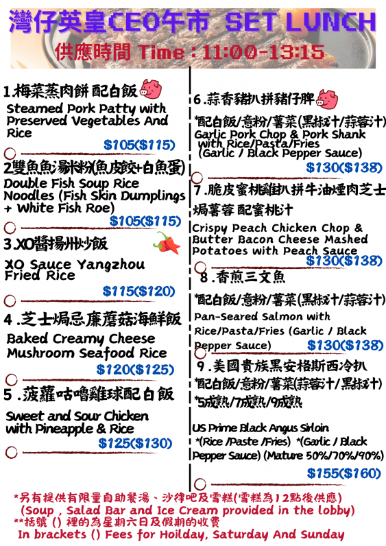 #每位包兩杯無酒精飲品,另收加一服務費。